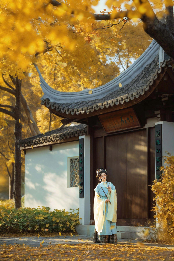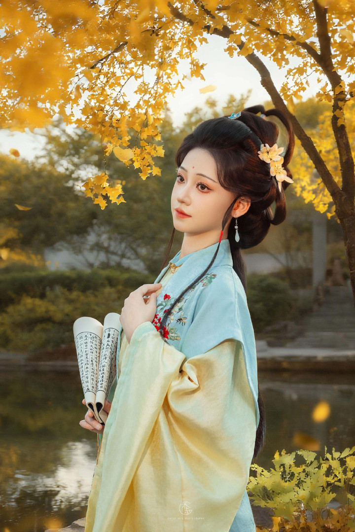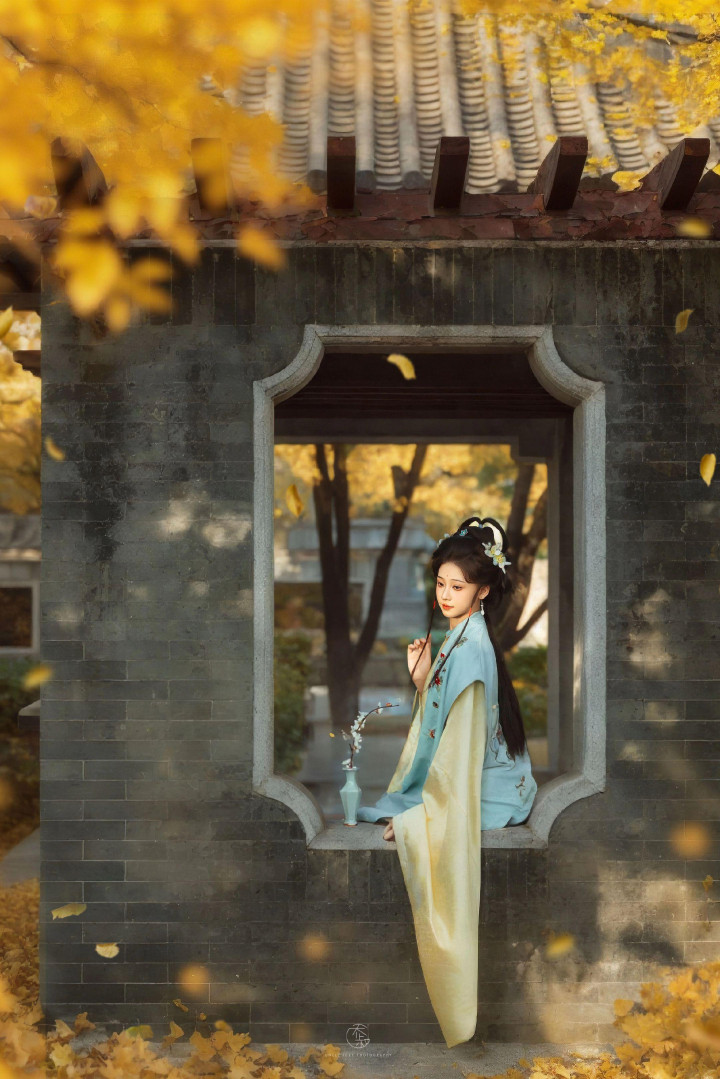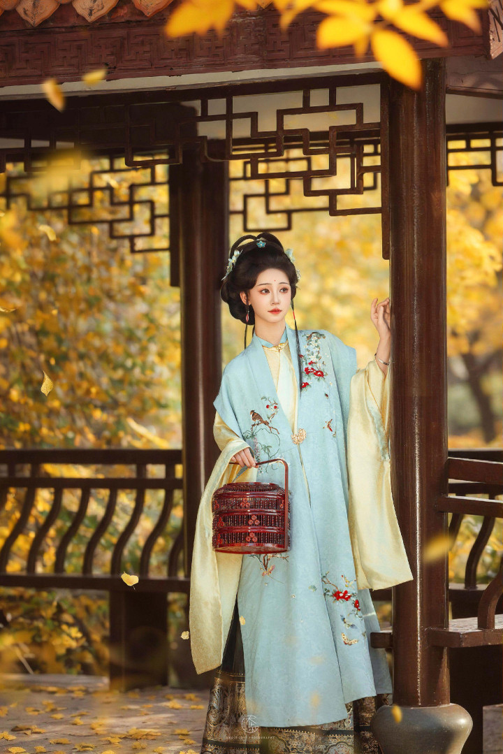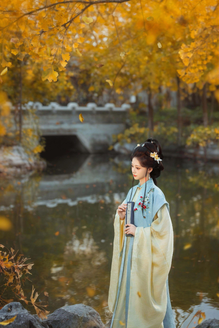 明制汉服“风吹一派叶,万物已惊秋”🍂。