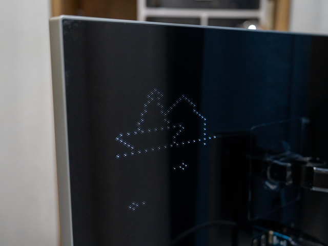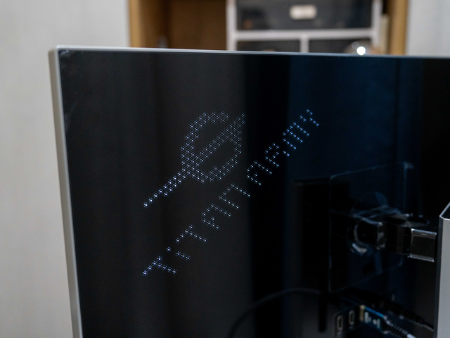 而且背部左上角还搭载一块由949颗LED灯珠构成的点阵像素屏幕——暗域神瞳显豁矩阵(名字若干有点中二),不仅扶助26种预设动态灯效展示,还扶助展示自界说内容,通过OSD确立即可。